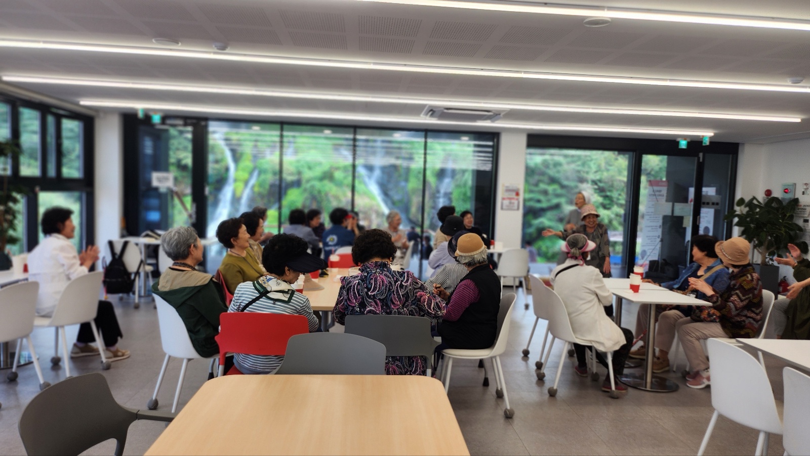 시니어아카데미 학장님과 교사분들의 율동을 시작으로 몇몇분들의 노래실력 뽐내기가 이어졌습니다^^
