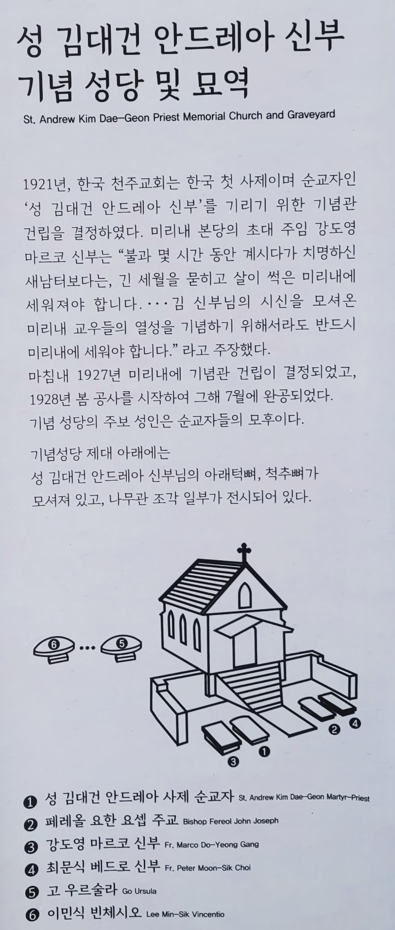 복음 전파에 있어 가장 중요한 입과 다리 유해 일부분이 미리내 성지에 모셔져 있는 만큼 복음 전파의 중요한 의미를 성지전체가 전하고 있다는 건데요,
