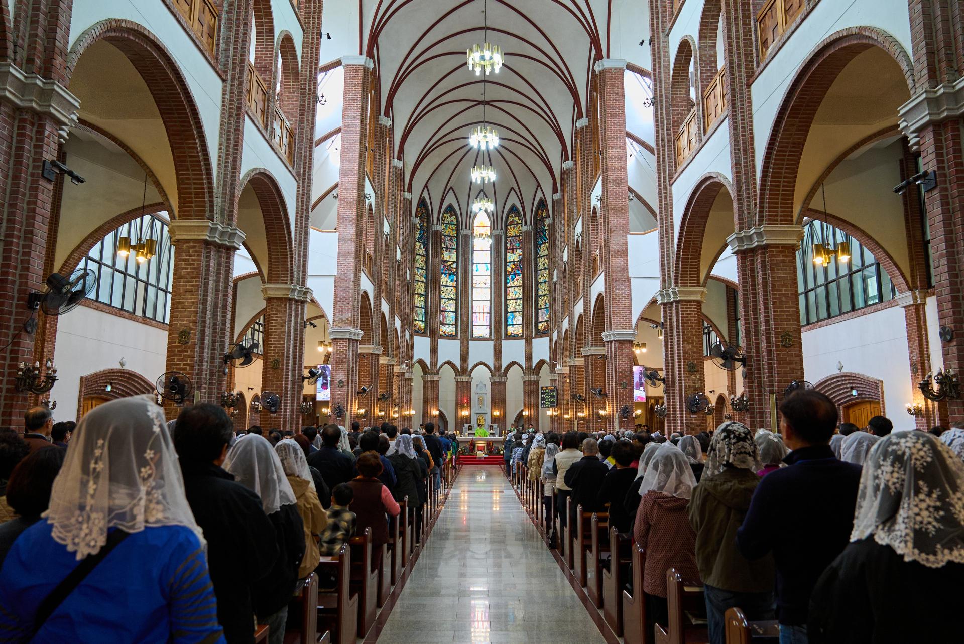 좁지만 줄지어 참배하는 신자분들의 모습